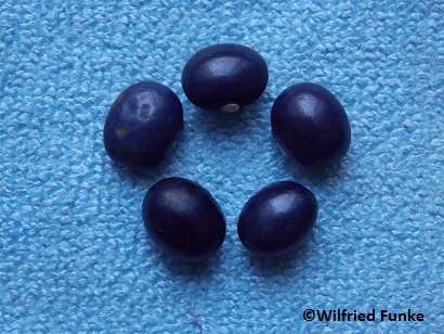Poleschka hat glänzende dunkelviolette Kerne.Sie zeichnen sich schon in den Hülsen ab. Üppig werden die Hülsen gebildet, die Bohnensorte ist äußerst ertragreich.