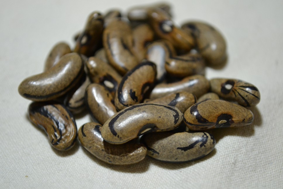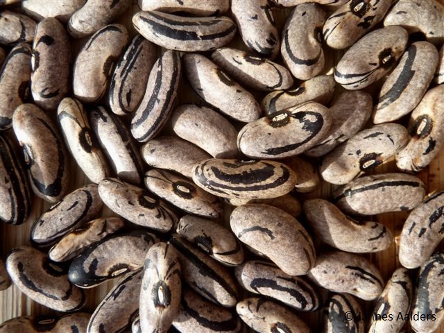 "85 days - Large oval pods are purple streaked on huge vines. Kidney bean shaped with mauve background."