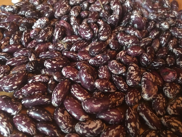 Die Bohnen-Schoten von Railroad hatten bei meinem Anbau 2013 3 bis 4 Kerne.