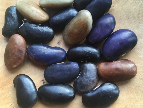 Stark rankend, 3,5-4 m hoch. Körner schwarz, braun, weiß, violett gesprenkelt. Intensiver Bohnengeschmack, jung auch als Fisole nutzbar. Bringt trotz vielem Regen guten Ertrag. Reift bie mir A-M X.