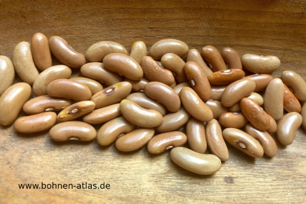 Eine frühe reichtragende Sorte mit flachovalen 15-18 cm langen Hülsen. Im Wuchs nildet sie einen mittelhohen Hochbusch.Rechtzeitiges Pflücken empfehlenswert, wird sonst schnell zäh. Erstes Pflücken ungefähr Anfang Juni, Korn hellbraun