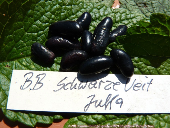 Eine Sorte aus St. Veit in Österreich. Diese Sorte hat violette Blüten und große, langgestreckte schwarze Samen (18 x 5 mm). Guter Ertrag. Von Werner Abel über "grünerTiger" erhalten