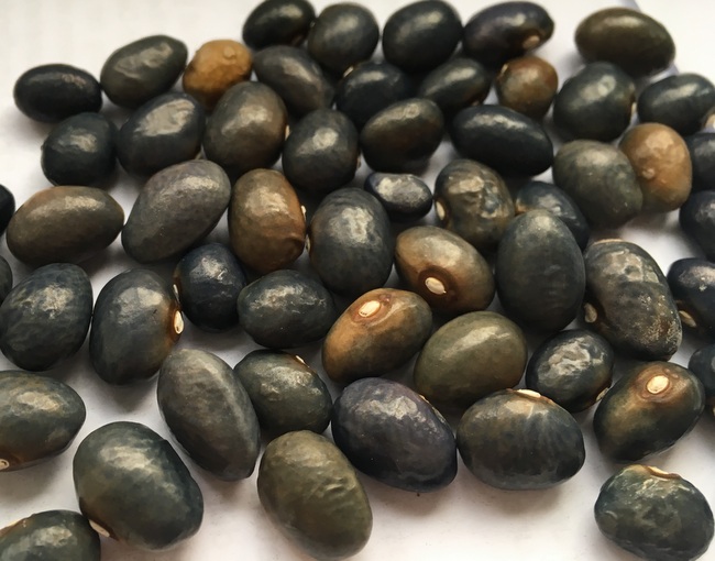Einer lokalen Bohnensorte aus Slowenien. Die slowenische "PflanzenJägerin" Jelena de Belder-Kovacic (1925-2003) brachte diese Bohne in das Arboretum von Kalmthout. (Belgien) Wir haben die Blue Jeans Bohnen von ihrer Tochter Diane de Belder im Jahr 1998 erhalten...