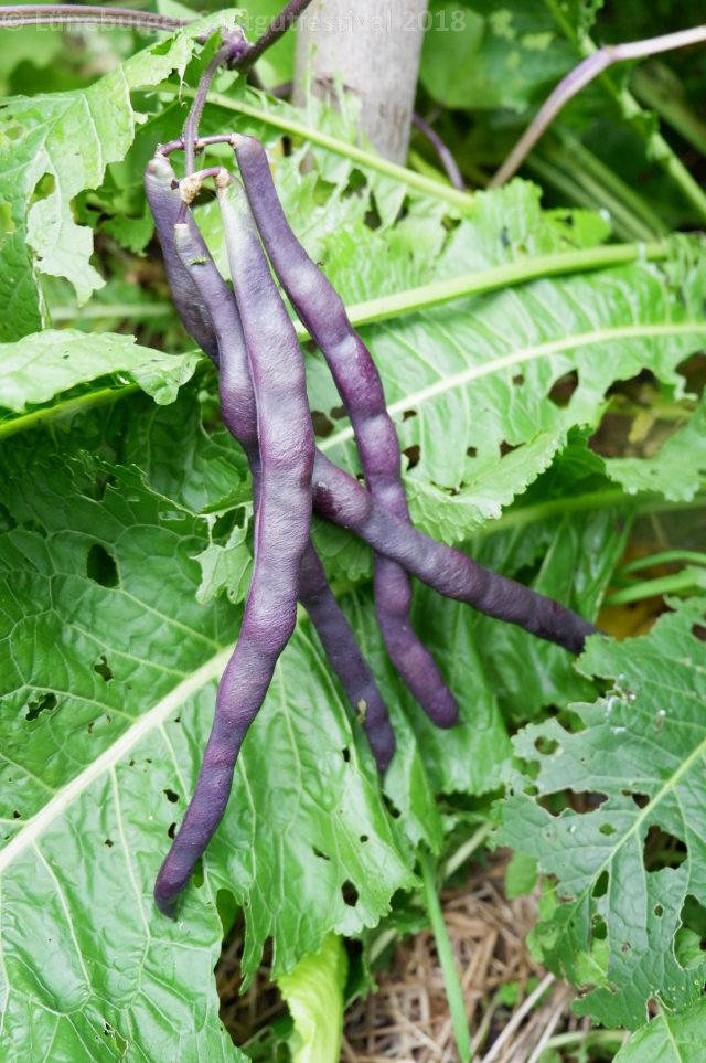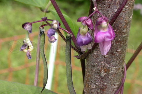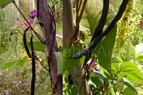 Ausgewachsen eine breite lilafarbene Bohne. Das Foto zeigt sie jung geerntet als Filetbohne. Aber auch superlecker, wenn sie schon dick sind. Unverwüstliche Pflanze, sowohl für warme als auch für kalte Regionen. Die Hülsen werden etwa 25cm lang und 1,5 cm breit. Ausgezeichneter Geschmack und fadenlos. Die Bohnen verwandeln sich in ein schönes glänzendes Grün während des Kochens. Dunkelviolette Bohne italienischer Herkunft, ertragreich und sehr schmackhaft. Junge Hülsen zunächst grün mit lila Sprenkeln, erst später zeigt sich die Dunkelviolette Farbe. Stengel und Blüten ebenfalls violett. Sehr früh.