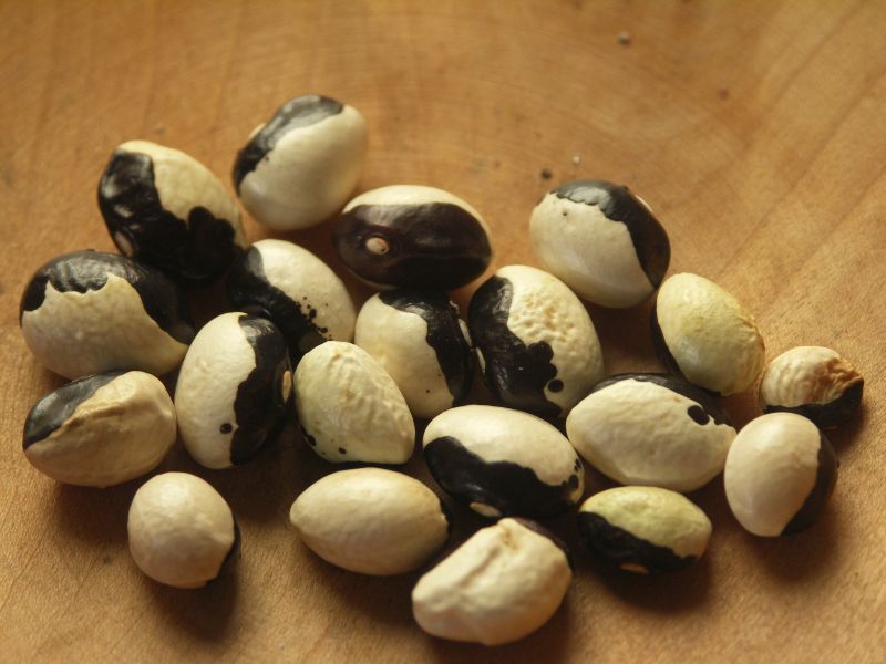 2005 habe ich sie zusammen mit der bosnischen Schwarz Weissen erhalten, um sie mit einer Art zu vergleichen, die man mir geschenkt hatte. Unter dem Namen YIN Yang Bohne war sie identisch mit der Tag und Nacht Bohne, mit einem Unterschiede. Sie klettert nicht, sondern wächst nur halb so hoch wie eine Reiserbohne.