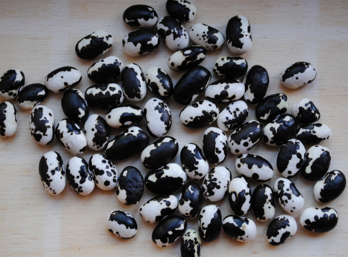 Ein wirklisch schöner Vertreter der Anasazi Bohnen, Vaquero haben faszinierende schwarzeweiße Markierungen, ähnlich wie Appaloosa.