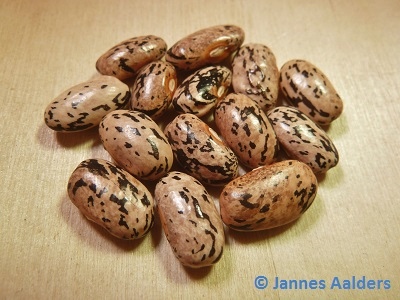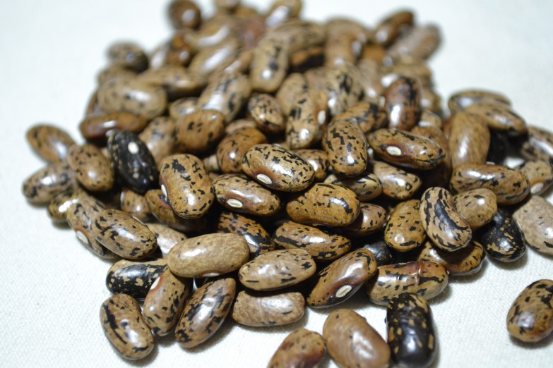 From Seed Savers Exchange: "These beans were popular in the 1930s, called crazy due to the fact that when grown without irrigation, the plants drop their leaves, but when fall rains come, they leaf out again, like crazy. From the Hill Family, Woods Mtn, Johnson County, Arkansas."
