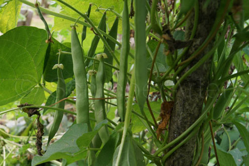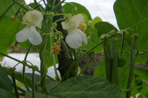 From Native Seeds/SEARCH: "A prolific bean that can be eaten green or as a shelled or dried bean. Pick when very small and flat for tender tasty green beans, before beans start to swell inside the pod. Seeds are purple on beige. Plants are heat tolerant and fast maturing (75 days to dry seed when planted in Phoenix). Vigorous pole bean with white flowers. A Native Seeds/SEARCH favorite."